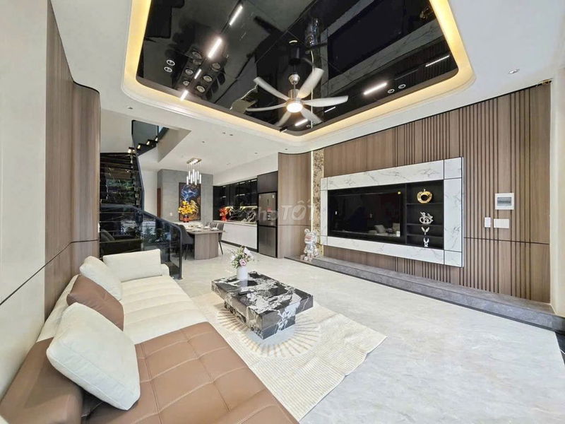 +Tầng 1 gồm sân để xe với hệ thống tiểu cảnh sân vườn. +Phòng khách hiện đại với tv 56 in bộ sô pha sang trọng đẳng cấp lịch lãm, hệ thống quạt trần đc thiết kế và tính toán công năng kỹ càng.