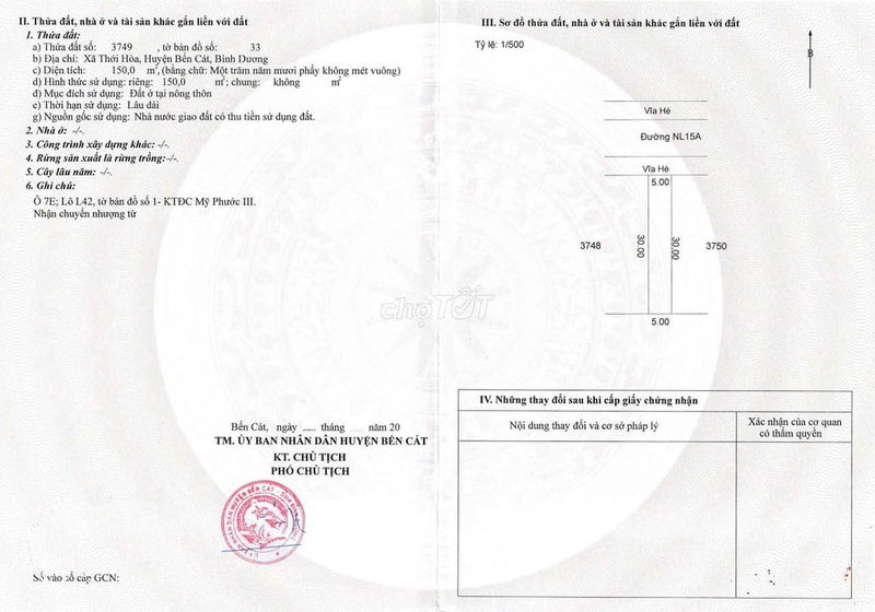 Thới Hòa, Bến Cát Nhà mặt phố 1 tầng 140 – 160 1,5 – 1,7 tỷ 10,7 – 11,9 2023 – 2024