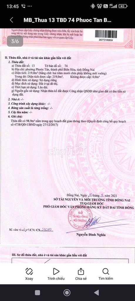 | Diện tích đất | 219 m² (10x22m) | 150 – 250 m² | Diện tích khá lớn, phù hợp kinh doanh, xây dựng. |