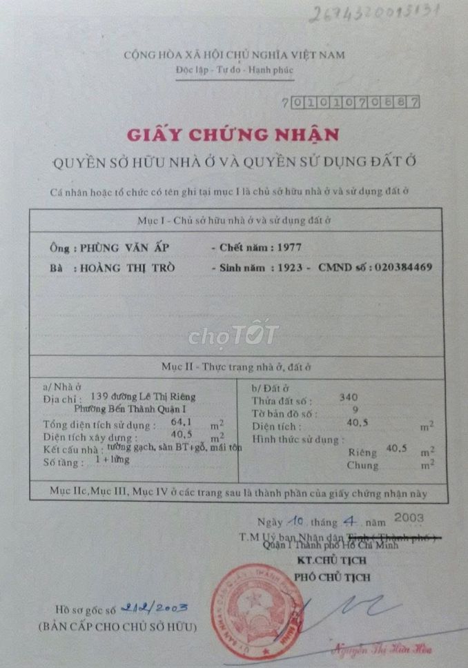 | Tiêu chí | Nhà tại 139 Lê Thị Riêng | Nhà mặt tiền Quận 1 (tham khảo) | Nhận xét |