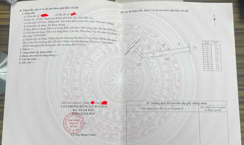 - Diện tích thổ cư thực tế chỉ 200 m², phần còn lại là đất vườn hoặc chưa được công nhận thổ cư.