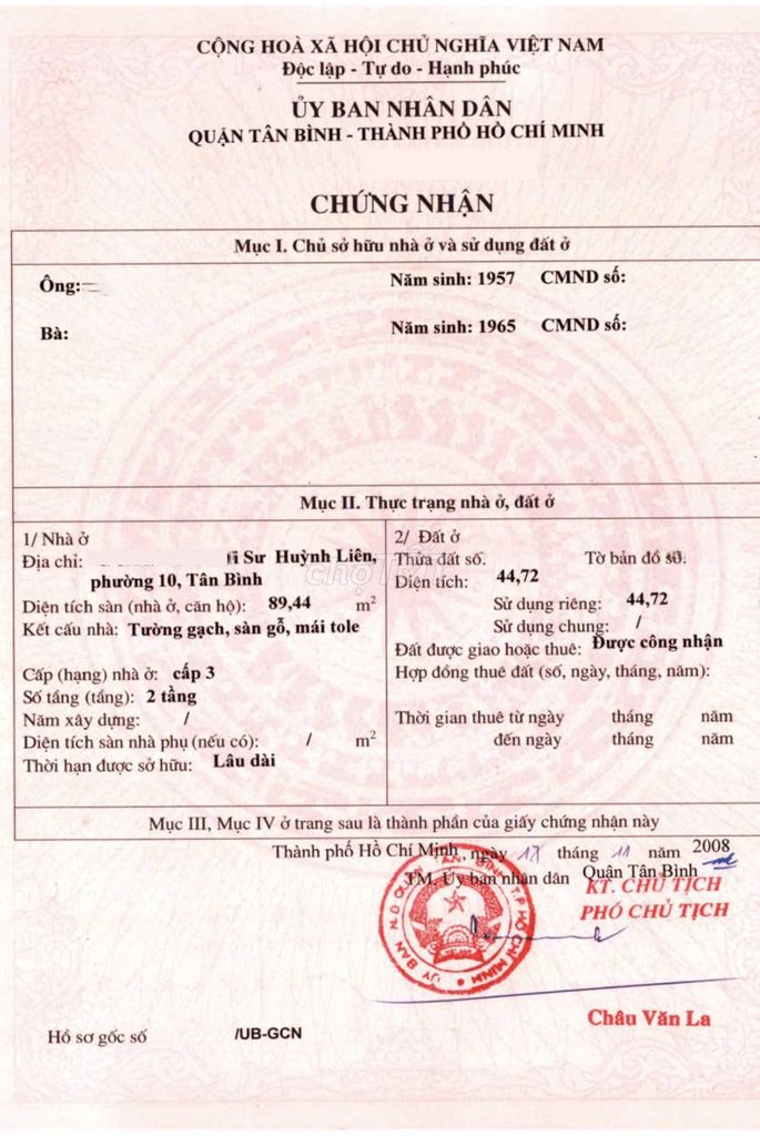 • Giấy tờ pháp lý