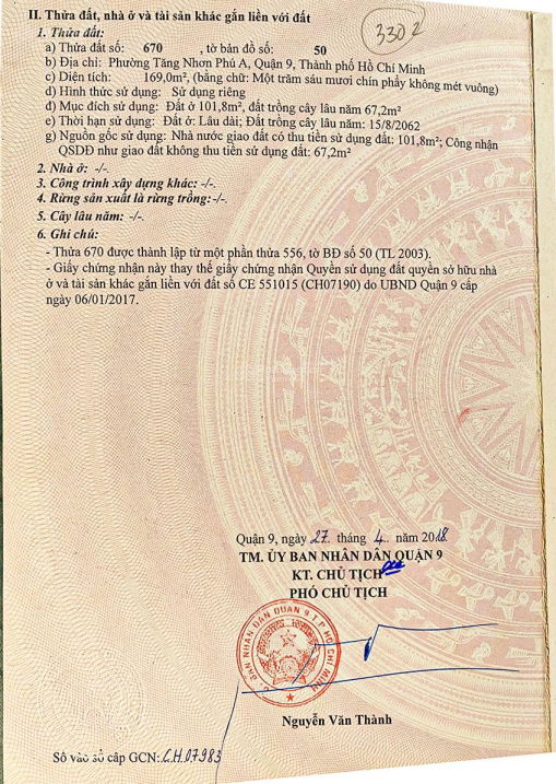 Đường Tăng Nhơn Phú, Thủ Đức 160 12,5 78,1 Nhà 3 tầng, mặt tiền 4m, đã hoàn thiện