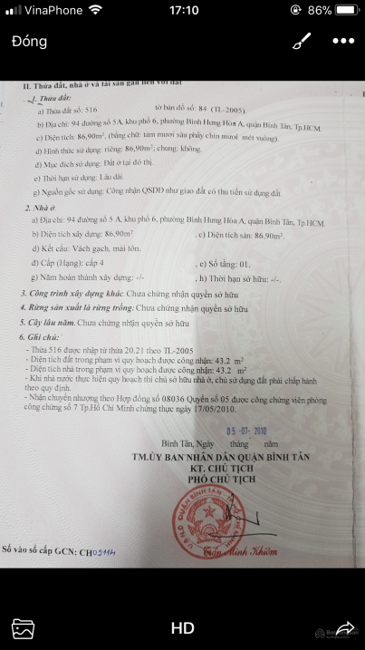 Check giá "Bán nhà phố chính chủ diện tích 86 m2. Phường Bình Hưng Hòa a, Quận Bình Tân"