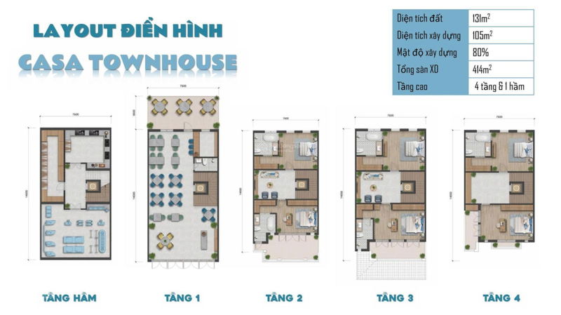 | Casa Townhouse – Blanca City | 131 | 21 | ~160 | Vị trí biển, 4 tầng + hầm, chưa có nội thất |
