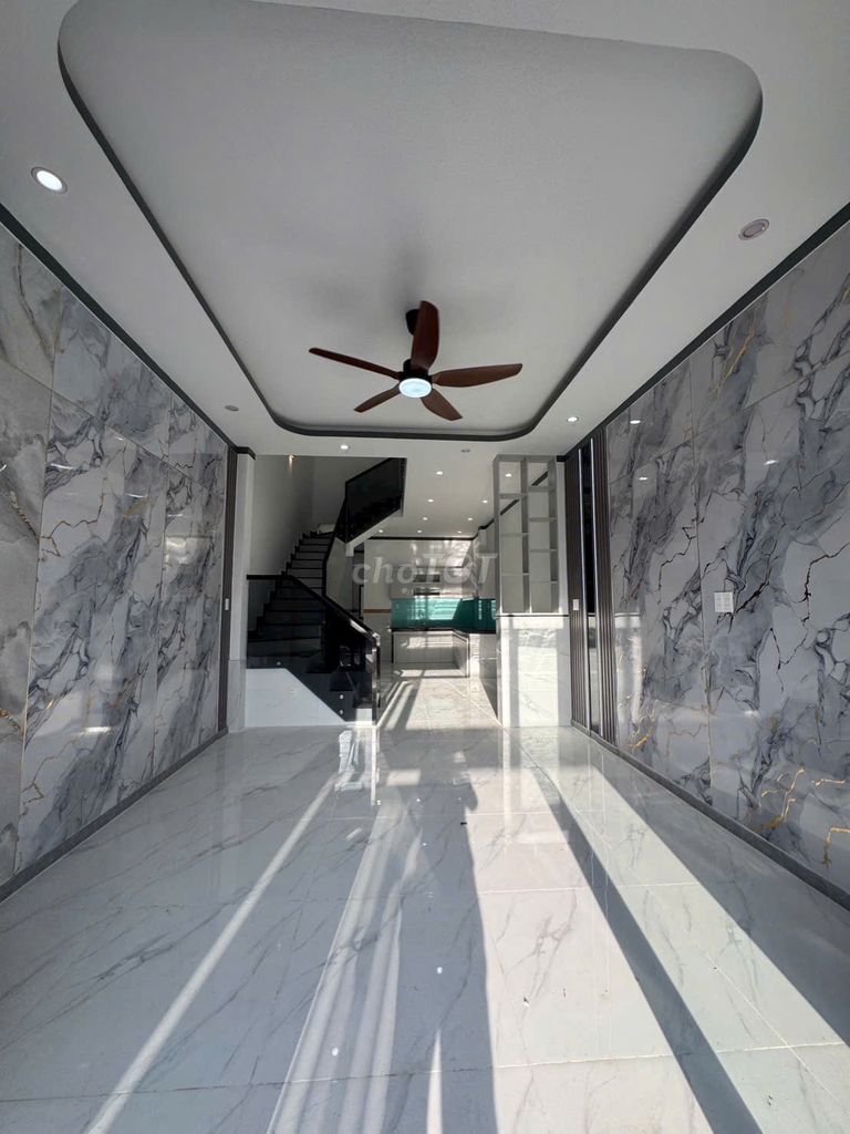 Nhà có diện tích sử dụng 110 m² trên diện tích đất 72 m², nhà thiết kế 1 trệt 1 lầu, 3 phòng ngủ, 2 vệ sinh, ban công, giếng trời tạo không gian thoáng mát. Nhà có nội thất đầy đủ, sổ hồng riêng và thổ cư, đã hoàn công, rất thuận tiện cho việc sang tên và sử dụng lâu dài.