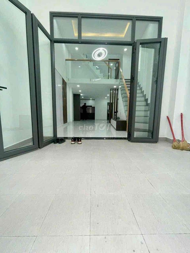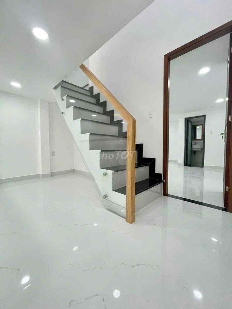 Nhà bán có diện tích đất 54m² với mặt tiền ngang 3,7m và chiều dài 12m, xây dựng 3 tầng với 3 phòng ngủ và 4 phòng vệ sinh, diện tích sử dụng thực tế khoảng 102m² (1 trệt 2 lầu + sân thượng). Nhà hoàn thiện cơ bản, thuộc loại hình nhà trong ngõ/hẻm, nở hậu, đã có sổ đỏ pháp lý rõ ràng. Giá chào bán là 6,8 tỷ đồng, tương đương khoảng 125,93 triệu đồng/m² diện tích sử dụng.