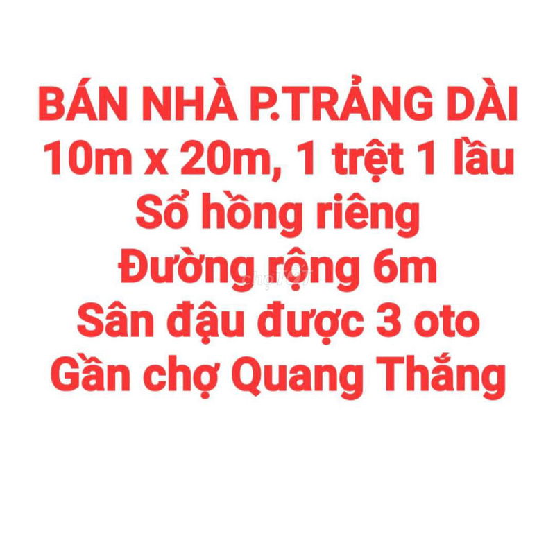 | Phường Trảng Dài (nhà hẻm ô tô) | 200 | Nhà 1 trệt 1 lầu | 3,5 | 17,5 | Đường hẻm rộng, gần chợ, sổ hồng riêng |