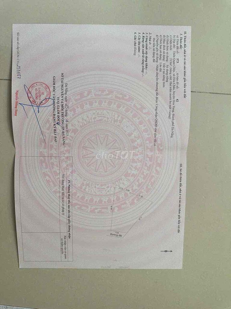 | Đường 4 M Quan Châu, Hòa Xuân | 212 | 11,56 | 2,45 | Đất thổ cư, sổ đỏ, nở hậu, hướng Đông |