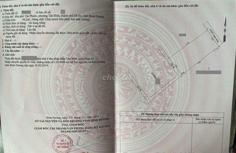| Phường Tân Đông Hiệp (gần vòng xoay An Phú) | 90 | 28 – 30 | 2,52 – 2,7 | Đất thổ cư, mặt tiền đường nhựa 10m |