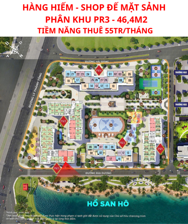 - Vị trí mặt sảnh hàng hiếm: Căn hộ nằm ngay cửa ngõ phân khu PR3, mặt đường chính của cụm hơn 40 tòa chung cư, lượng người qua lại rất đông, thuận tiện khai thác kinh doanh và cho thuê.
