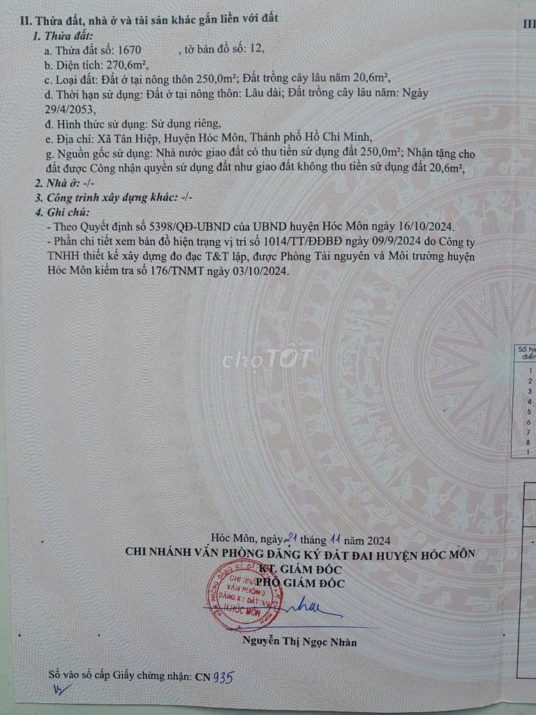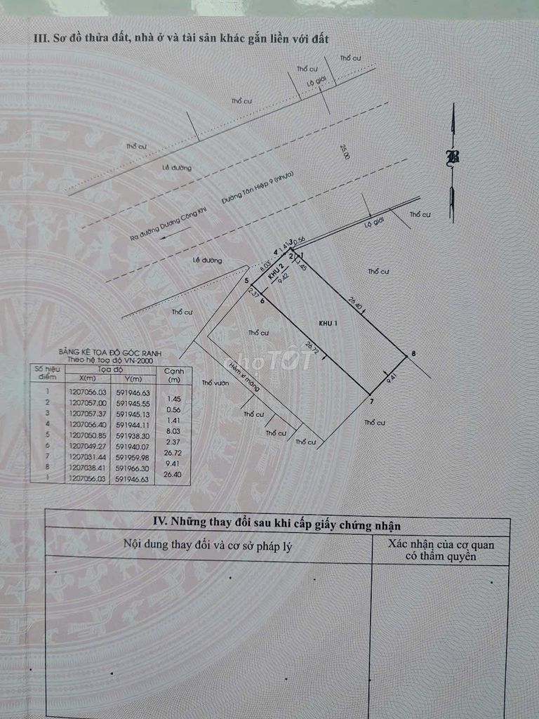 | Vị trí | Mặt tiền đường Tân Hiệp 9, hướng Tây Nam | Vị trí tương đương trong huyện |