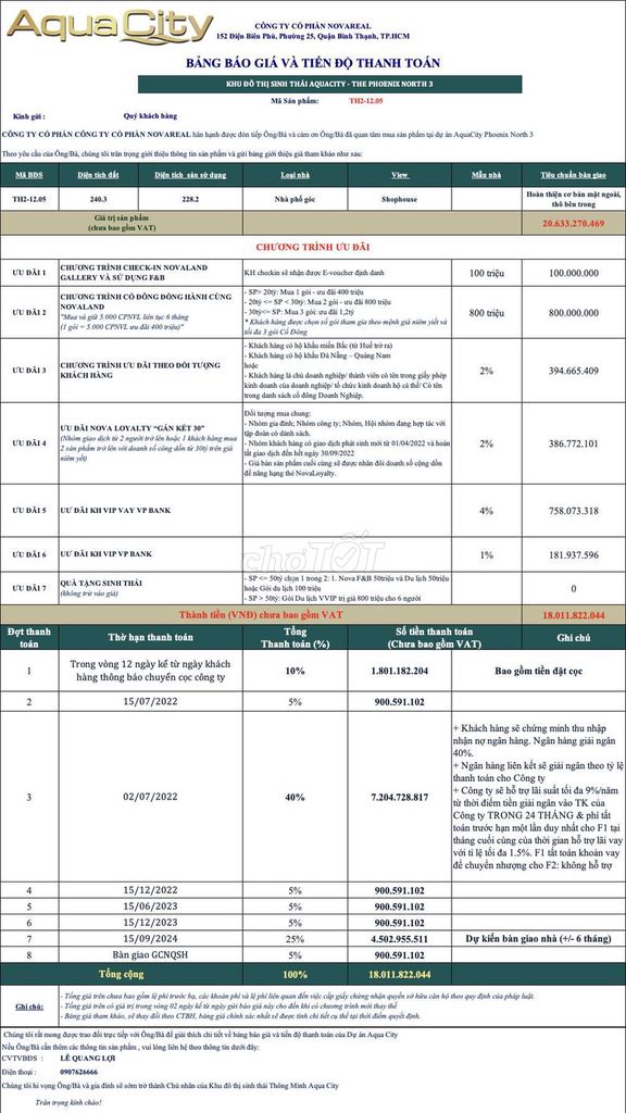 | Đảo Phượng Hoàng, Aqua City | Shophouse 3 tầng, hoàn thiện cao cấp | 180 | 80 – 90 | 14.4 – 16.2 | Vị trí đắc địa, nhiều tiện ích |