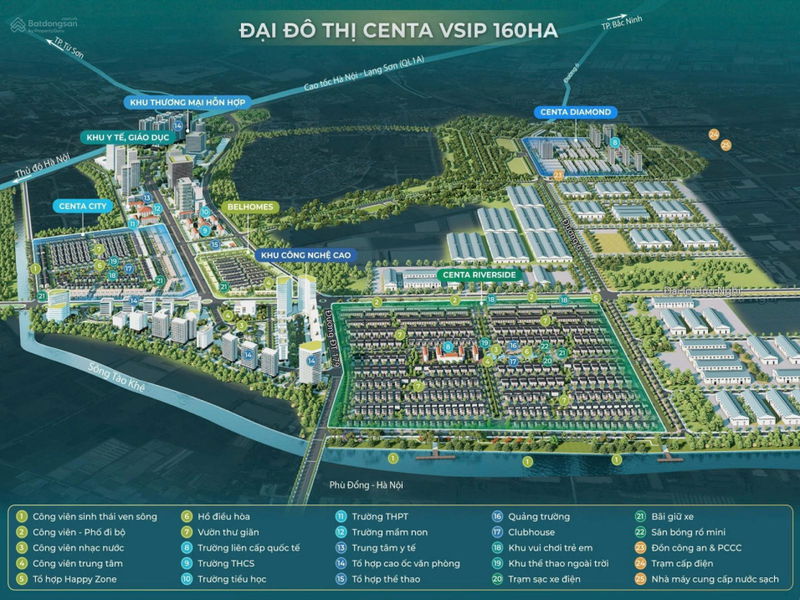 | Tiêu chí | Centa Riverside, Từ Sơn | Khu đô thị Vsip Bắc Ninh | Khu vực Đông Anh, Hà Nội | Phường Phúc Lợi, Long Biên, Hà Nội |