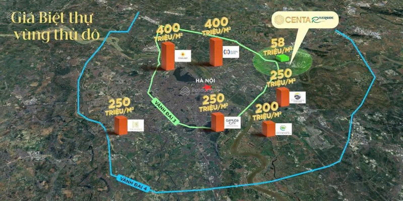 Mức giá 16 tỷ đồng cho biệt thự song lập diện tích 225m² tại dự án Centa Riverside, Từ Sơn, Bắc Ninh là tương đối hợp lý trong bối cảnh thị trường bất động sản vùng ven Hà Nội hiện nay. Dự án nằm trong khu vực có hạ tầng giao thông phát triển nhanh, kết nối thuận tiện với trung tâm Hà Nội chỉ 12km, đồng thời hưởng lợi từ các dự án hạ tầng lớn như tuyến đường sân bay Gia Bình, các cây cầu mới qua sông Hồng và sông Đuống. Những yếu tố này tạo đà tăng giá mạnh cho bất động sản khu vực Đông Bắc Hà Nội.