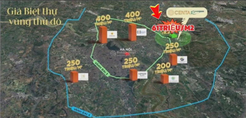 | Tiêu chí | Centa Riverside, Từ Sơn, Bắc Ninh | Biệt thự tương đương tại Hà Nội |