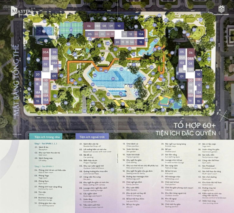 - Chân tòa gồm: Bể bơi ng lớn, trẻ em, bể sục Jacuzzi, khu spa thư giãn, khu sauna, khu dạo bộ, Sân Tennis, pickle ball, vườn nướng bbq, sân chơi trẻ em, vườn thiền ngoài trời,...