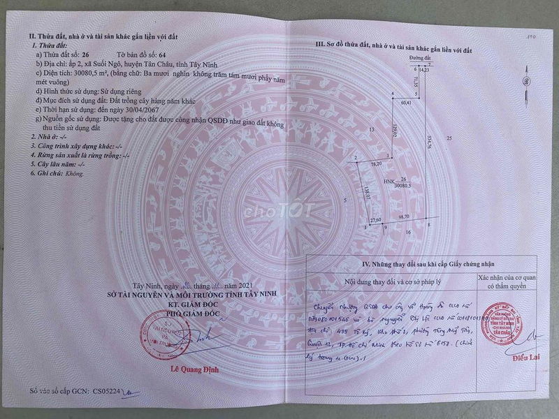 | Vị trí | Đường tỉnh 795B, xã Suối Ngô, huyện Tân Châu | Gần đường tỉnh, cách đường 795 khoảng 1 km | Đường vào 6m, thuận tiện giao thông, vị trí khá tốt trong vùng |
