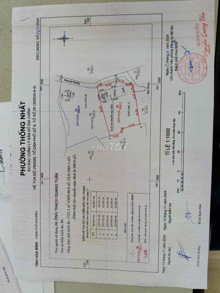 Tôi cần bán đất tại thành phố Hoà Bình. Diện tích 1721m. Có 60m thổ cư
