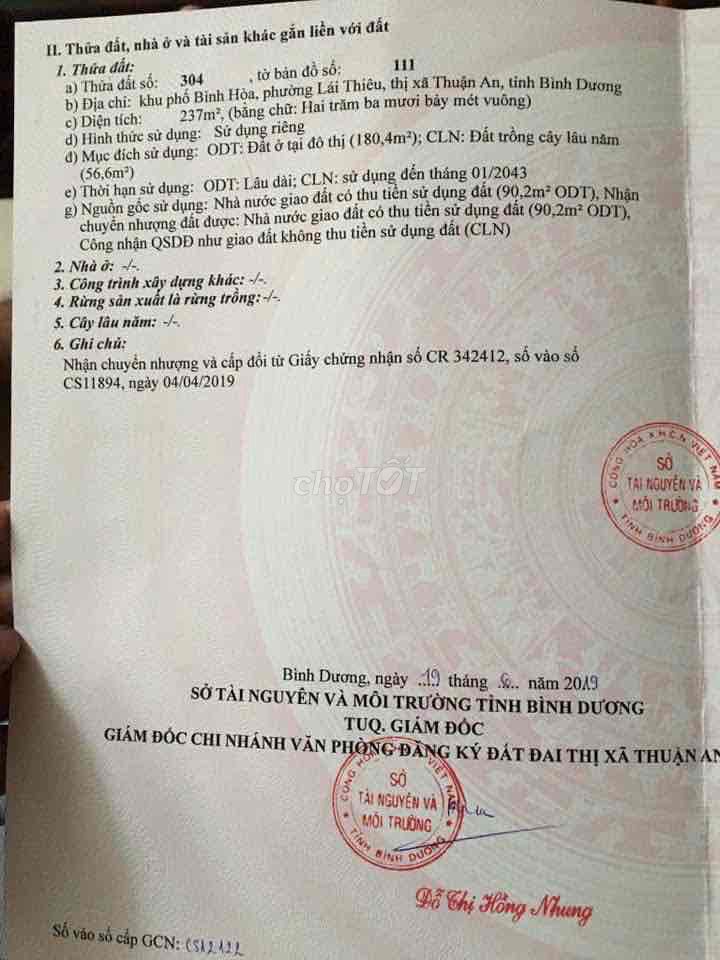 Giá chào bán 7,5 tỷ đồng cho diện tích 237 m² tương đương khoảng 31,65 triệu đồng/m² là mức giá khá cao so với mặt bằng chung đất thổ cư tại khu vực Thuận An hiện nay, đặc biệt là đối với đất mặt tiền đường nhỏ Lái Thiêu 16.