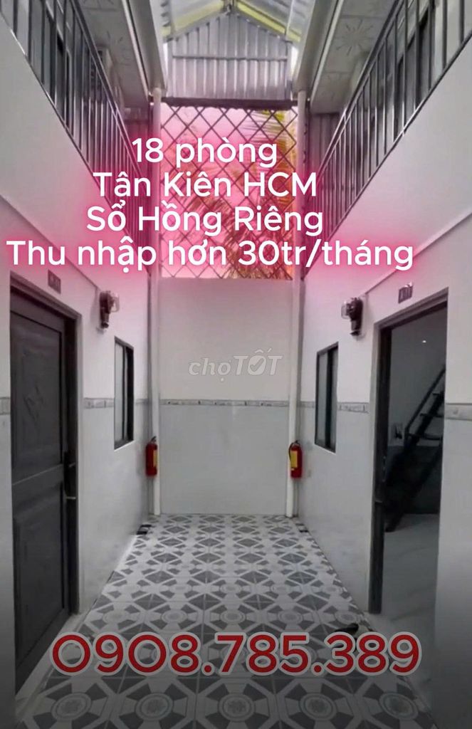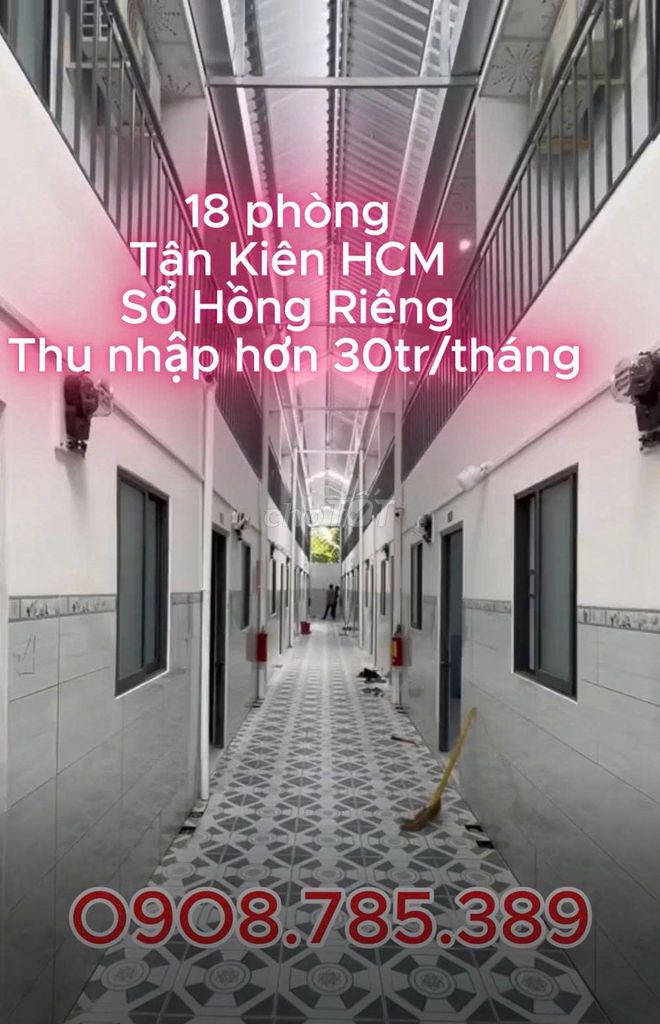 - Kết cấu: Nhà 1 tầng nhiều phòng trọ (18 phòng) đã hoàn thiện, có điện nước riêng từng phòng, dễ khai thác dòng tiền ngay.