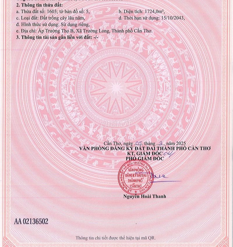 | Xã Trường Long, huyện Phong Điền | 1.724 | 1,94 | 3,35 | Lô đất đang phân tích, mặt tiền đường, pháp lý rõ |