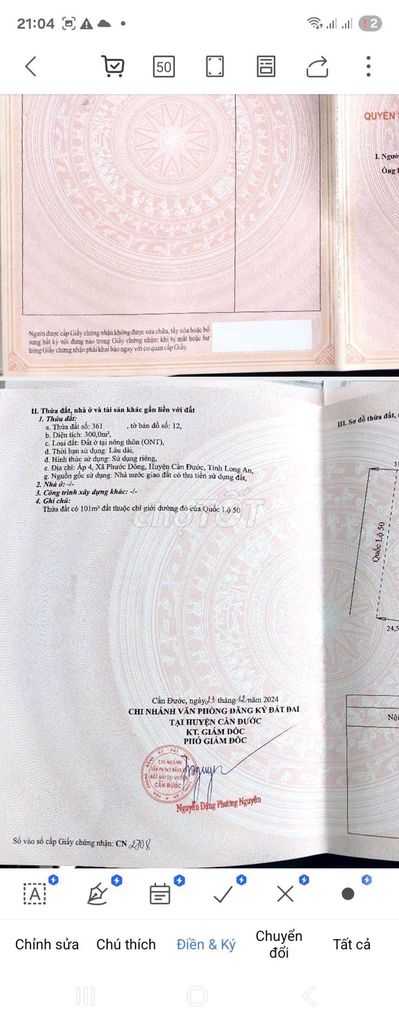 | Quốc lộ 50, Thị trấn Cần Đước, Long An | Đất nông nghiệp | 2567 | 4,09 | 10,5 | Mặt tiền, đã có sổ, không phải thổ cư |