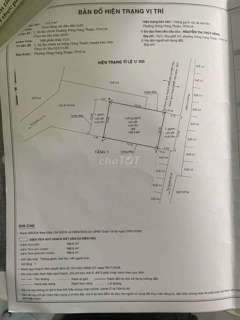 | Hiện trạng | Đất + nhà xưởng cho thuê | Đất trống, sổ hồng | Nhà cấp 4, đang ở |