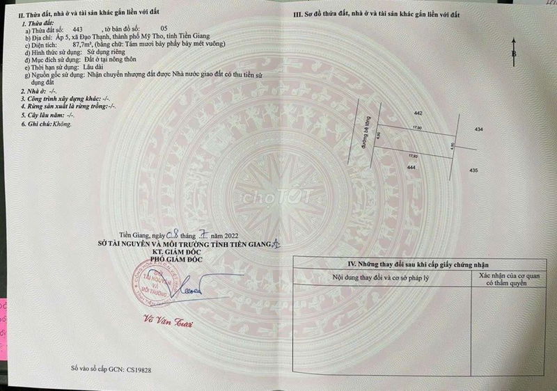 Diện tích đất 88 m², giá bán 850 triệu đồng, tương đương khoảng 9,66 triệu đồng/m². Đây là mức giá khá mềm so với trung tâm TP Mỹ Tho, đặc biệt khi đất nằm cách trung tâm chỉ 2 km, có đường nhựa ô tô đậu trước đất, và đất đã có sổ đỏ full thổ cư. Xét về mặt pháp lý và vị trí, mức giá này tương đối hợp lý.