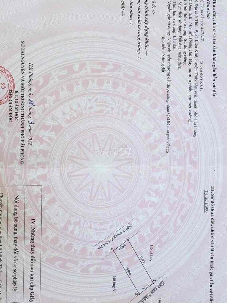 Xã Liên Khê, Thuỷ Nguyên 80 5,5 440 Đất thổ cư, đường hẻm nhỏ 2024 Q1