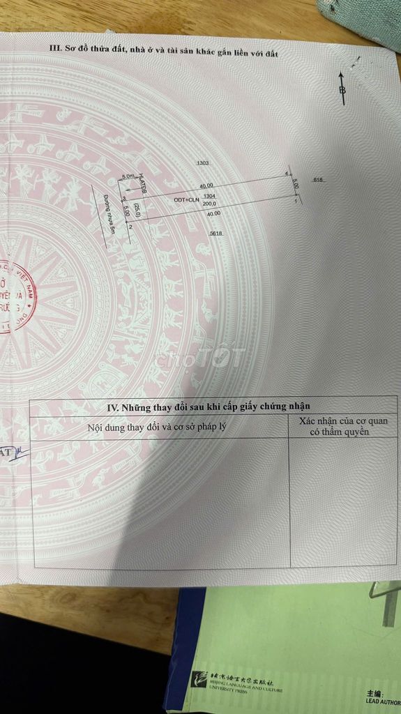 Diện tích đất 200 m² (chiều dài 40m, chiều ngang 5m) Diện tích đất tương đối lớn, thổ cư 50 m² Phần đất thổ cư chỉ chiếm 25% tổng diện tích, phần còn lại có thể là đất vườn, chưa xây dựng