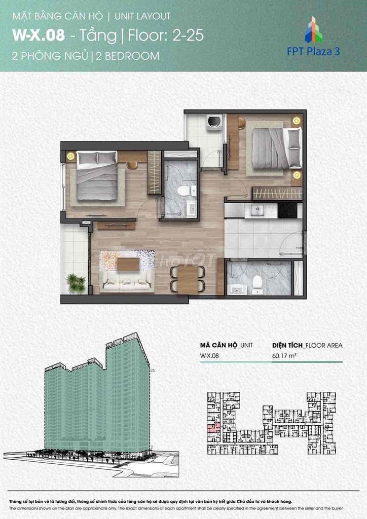 | Diện tích | 60.43 m² | 55 – 65 m² |