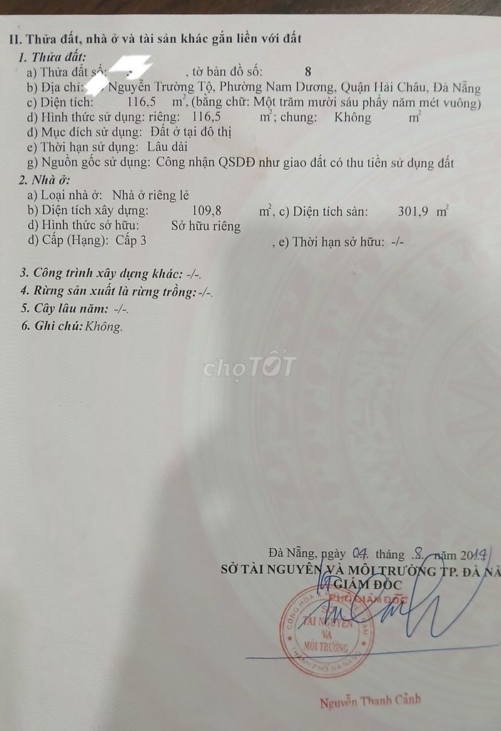 • Kiểm tra quy hoạch chi tiết khu vực, đặc biệt tuyến đường Nguyễn Trường Tộ có kế hoạch mở rộng hay thay đổi gì ảnh hưởng đến tài sản.