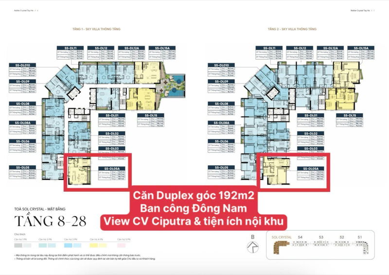 | Noble Crystal Tây Hồ – Duplex | 192 | 34 | 177 | Tây Hồ, view Ciputra, Đông Nam mát mẻ | Nội thất cao cấp, quản lý 5 sao | Giá ưu đãi theo gói vay |
