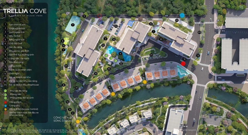 - Tiện ích nội khu đẳng cấp: Hồ bơi, công viên ven sông, phòng gym, yoga, BBQ,… phục vụ đầy đủ nhu cầu giải trí, thư giãn.