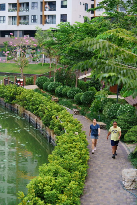 - Hai mặt hướng thủy: Căn hộ có view 2 mặt tiền kênh đào và rạch tự nhiên, rất hiếm và mang lại không gian sống trong lành, thoáng mát.