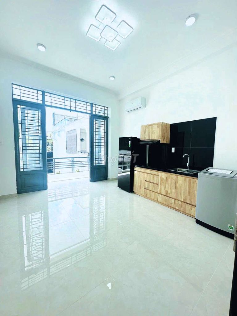 Căn hộ dịch vụ mini 1 phòng ngủ với diện tích 50m² tại địa chỉ 777 Nguyễn Kiệm, Quận Phú Nhuận đang được chào thuê với mức giá 8 triệu đồng/tháng. Căn hộ có nội thất cao cấp, hướng ban công Đông Nam, được trang bị hệ thống PCCC, có sổ hồng riêng, vị trí gần sân bay và trung tâm thành phố.