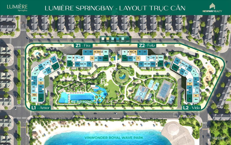 | Lumière Spring Bay | 1PN+ | 46,7 | 3,2 | 68,5 | Trung tâm Ocean City, view biển hồ + phố đêm, tiện ích cao cấp |