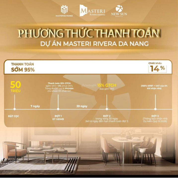 Mức giá 5,02 tỷ đồng cho căn hộ diện tích 68,2 m² tương đương khoảng 73,6 triệu/m², đây là mức giá đúng với giá niêm yết từ chủ đầu tư Masterise Homes cho dự án Masteri Rivera Đà Nẵng, đã trừ chiết khấu hấp dẫn lên đến 17%.
