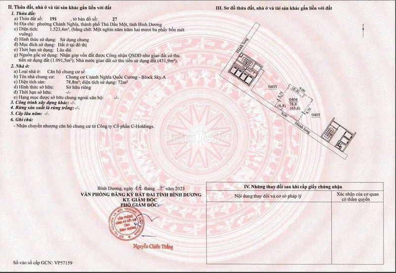 | C Sky View, Chánh Nghĩa, Thủ Dầu Một | Chung cư 2PN, 2WC | 80 | 2,1 | 26,25 | Hoàn thiện cơ bản, sổ hồng riêng | 2024 – hiện tại |