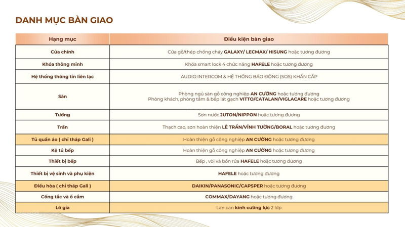 TIÊU CHUẨN BÀN GIAO CĂN HỘ KHẢI HOÀN PRIME