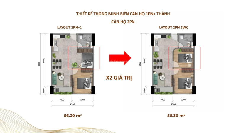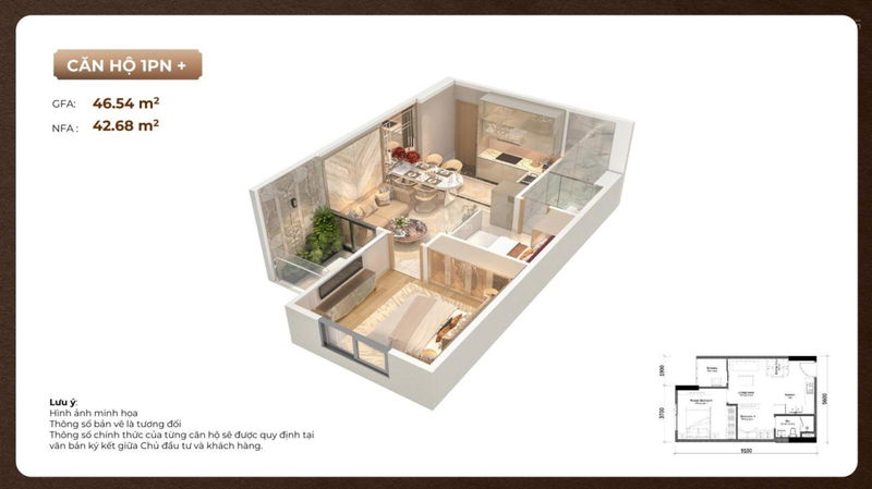 Căn hộ 1PN : 45,8m² - 56m² giá chỉ từ 2,9 Tỷ - 3,2 Tỷ