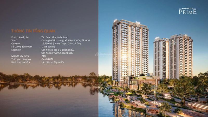 Khải Hoàn Prime 61 67 (2PN) Lê Văn Lương, Nhơn Đức, Nhà Bè View sông, nội thất Hafele, gần ZeitGeist, 10 phút Phú Mỹ Hưng