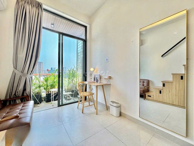 Căn hộ duplex có ban công view cây xanh rất hiếm trong phân khúc căn hộ mini ở Quận 7, giúp không gian thoáng đãng và tạo cảm giác gần gũi thiên nhiên. Thiết kế tone gỗ Hàn Quốc sang trọng và full nội thất là điểm nổi bật, giúp khách thuê không phải đầu tư thêm. Tòa nhà có thang máy tiện nghi, hầm xe ra vào bằng vân tay, camera an ninh tạo cảm giác an toàn và thuận tiện. Vị trí gần các khu công nghiệp và khu dân cư Nam Long, thuận lợi di chuyển về trung tâm Quận 2, Quận 4.