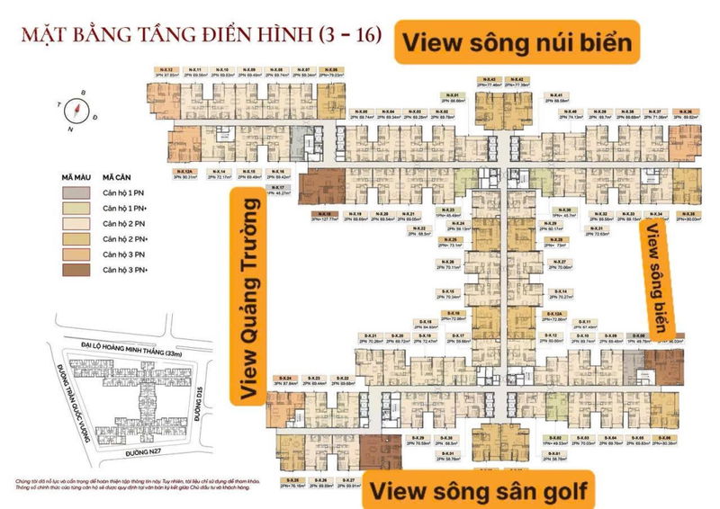 | Sunshine Marina | Ngũ Hành Sơn | 60 – 70 | 2 phòng ngủ | 2,7 – 3,0 | ~40 – 43 | Tiện ích cao cấp, view biển |