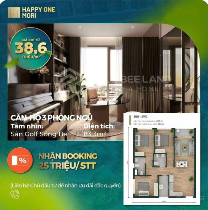 | Tiêu chí | Happy One Mori (1PN, 52,9m²) | Giá tham khảo khu vực Thuận An | Nhận xét |