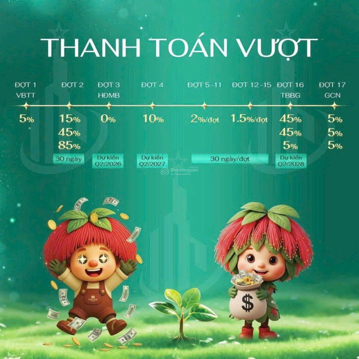 | Chính sách thanh toán | Trả trước 5%, hỗ trợ vay 0% lãi suất 36 tháng, ân hạn gốc | Chính sách vay ưu đãi tương đương | Giúp giảm áp lực tài chính, phù hợp đầu tư và an cư. |