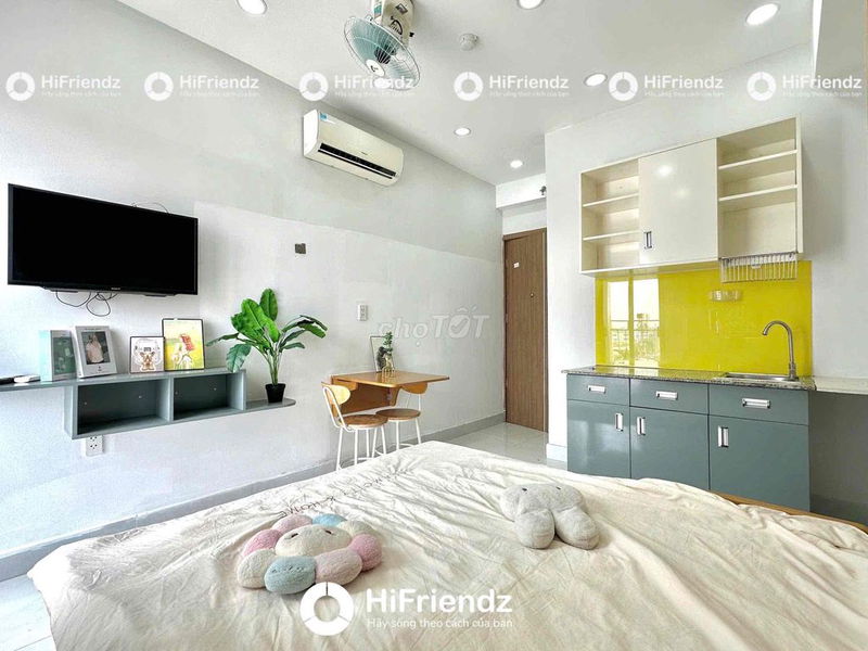 Nội thất và tiện ích Máy lạnh, giường, kệ TV, quạt, kệ bếp, phòng Gym miễn phí, thang máy, sân thượng, ban công Cung cấp khá đầy đủ tiện nghi, giúp người thuê tiết kiệm chi phí đầu tư ban đầu.