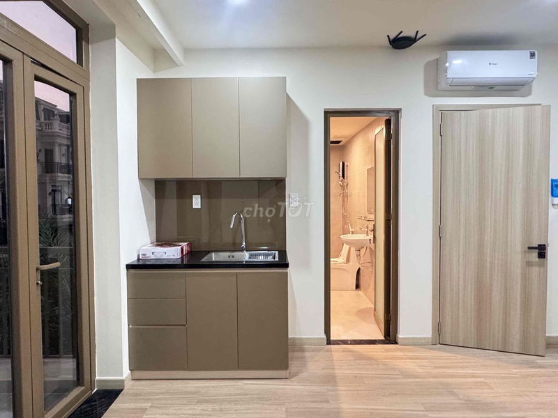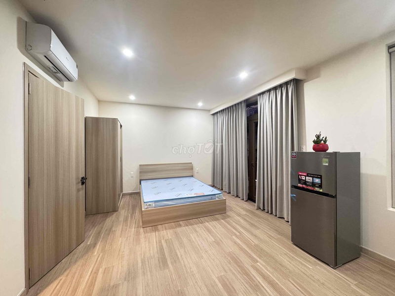 Diện tích 40m² với 1 phòng ngủ, 1 phòng vệ sinh, thiết kế phù hợp cho cá nhân hoặc cặp đôi thuê. Nội thất cao cấp đầy đủ thiết bị như máy lạnh, máy giặt, tủ lạnh, bếp từ… tăng giá trị sử dụng và tiện nghi, phù hợp với người đi làm hoặc gia đình nhỏ.