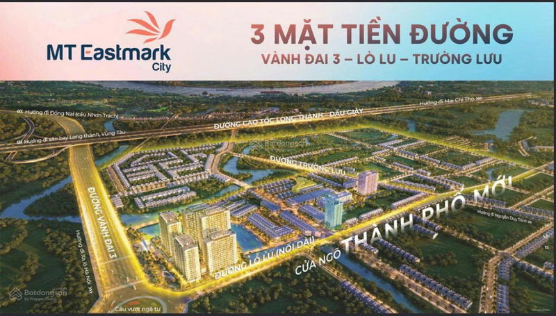 - Vị trí dự án MT Eastmark City ở cửa ngõ phía Đông TP. Thủ Đức và hưởng lợi lớn từ hạ tầng giao thông mới như Vành Đai 3, Cao tốc Long Thành, giúp kết nối thuận tiện đến sân bay và các khu kinh tế trọng điểm.